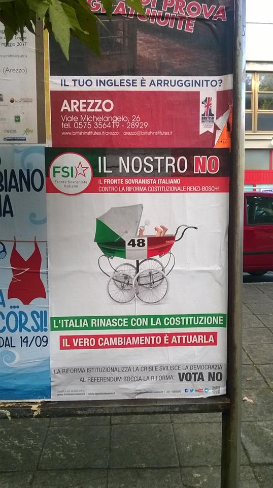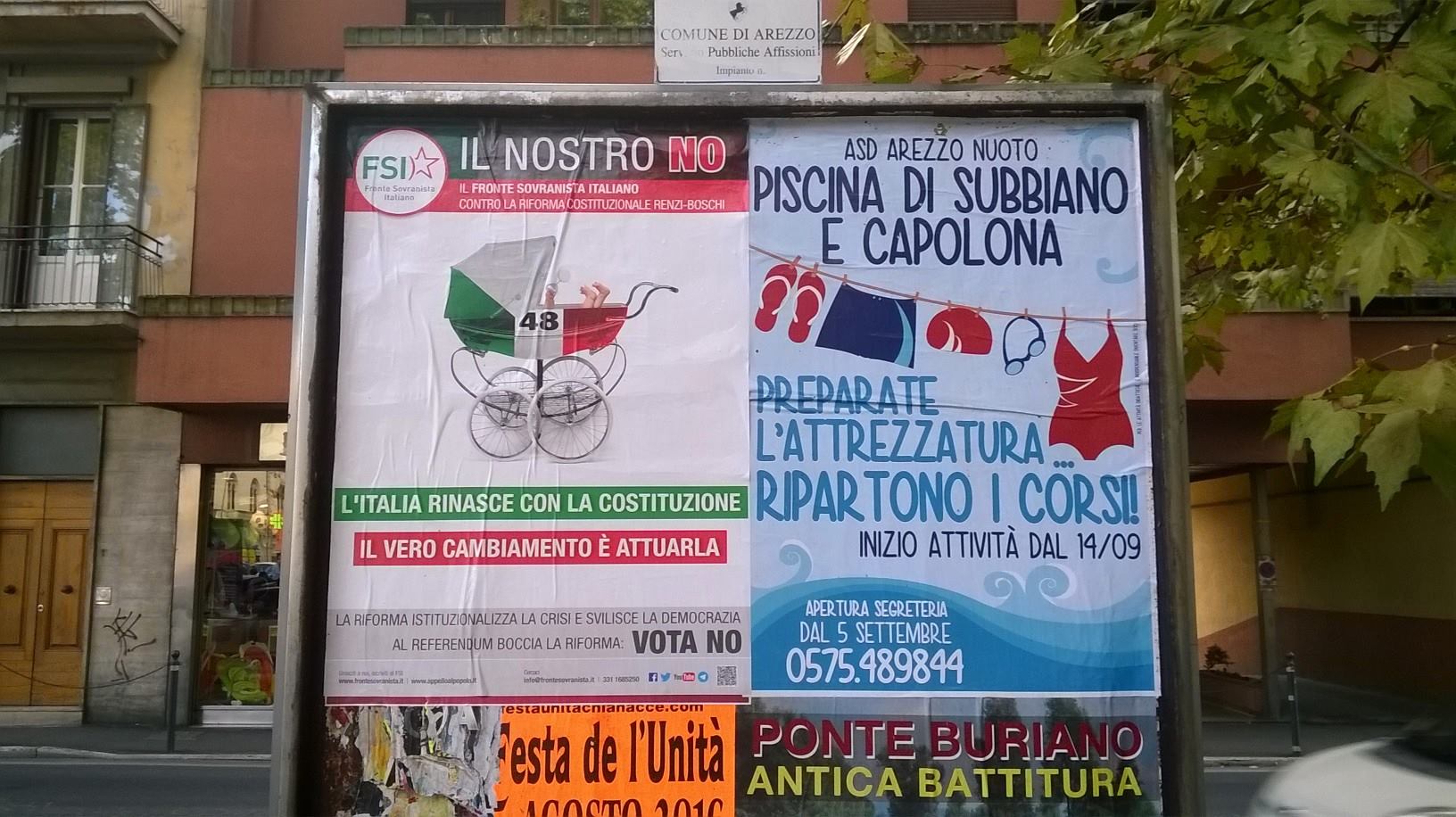 AREZZO: Referendum Costituzionale, manifesti del Fronte Sovranista Italiano per il NO