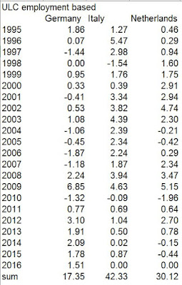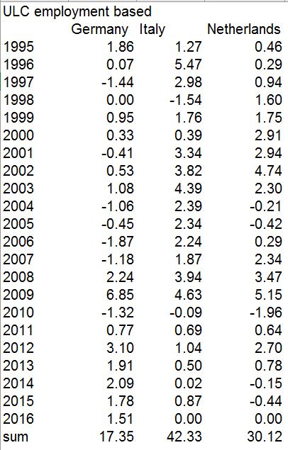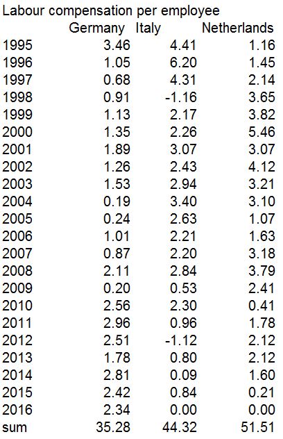Volevo quindi ripartire dal post sui salari alamanni, che all’epoca venne autorevolmente criticato (chissà se ora questo povero cretino vuole andare a dire la sua su Voxeu? Io all’epoca non ci persi tempo, nonostante le vostre numerose segnalazioni, semplicemente perché sapevo che sarebbero stati i tedeschi stessi ad ammettere il problema), per vedere come si colloca l’Olanda nello scenario europeo.