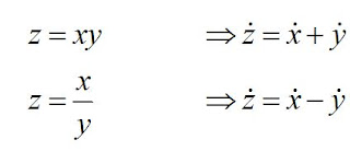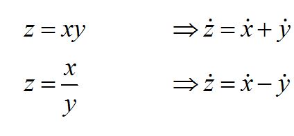 ovvero: il tasso di variazione di un prodotto è uguale alla somma dei tassi di variazione dei fattori, il tasso di variazione di un rapporto è uguale alla differenza fra il tasso di variazione del numeratore e del denominatore.