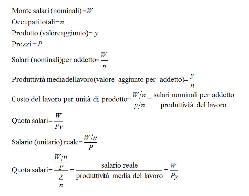 Di tutta questa roba abbiamo parlato più volte nel blog. Ad esempio, della definizione di costo del lavoro per unità di prodotto abbiamo parlato qui, e della quota salari qui.