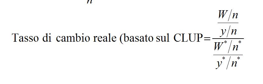 (dove un asterisco indica le variabili del resto del mondo in caso di tasso effettivo, o di un paese concorrente in caso di tasso bilaterale).