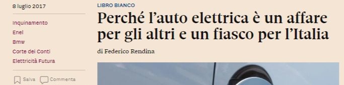 Il punto saliente però è un altro: con le tecnologie attuali l’auto elettrica serve solo per far emancipare un continente che ha perso la WWII e che non accesso al petrolio che conta.