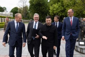 Per giunta, le dichiarazioni di Macron non sono un episodio isolato, ma si inseriscono in una strategia coordinata con altri leader europei e con il presidente statunitense Donald Trump. Il 10 maggio 2025, Macron, insieme a Keir Starmer, Donald Tusk e Friedrich Merz, ha partecipato a una visita a Kiev, dove è stato lanciato un ultimatum a Vladimir Putin: accettare un cessate il fuoco incondizionato entro il 12 maggio o affrontare “massicce” sanzioni coordinate tra Europa e Stati Uniti.