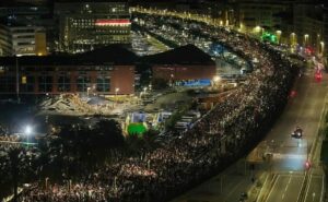 Una fiaccolata chilometrica ha attraversato Genova, passando per la sopraelevata fino al Porto Antico. Cinquantamila persone hanno accompagnato l’avvio della Global Sumud Flotilla: decine di imbarcazioni con a bordo «persone comuni (organizzatori, operatori umanitari, medici, artisti, sacerdoti, avvocati e marinai), che credono nella dignità umana e nel potere dell’azione non violenta», tenteranno di rompere l’assedio israeliano su Gaza via mare. Aprire un corridoio umanitario e porre fine al genocidio in corso del popolo palestinese sono le bussole di questa missione internazionale, che da Genova ha visto salpare oggi quattro barche a vela, in direzione Sicilia. «In una città medaglia d’oro per la Resistenza, si aiuta gli altri a resistere», ha detto ieri sera la sindaca di Genova Silvia Salis, sul palco allestito nel Porto Antico. Qui ha poi preso la parola il Collettivo di lavoratori Portuali (CALP) che, dopo aver bloccato a suon di scioperi e presidi diversi carichi di armi diretti a Israele, ha deciso di far parte dell’equipaggio dell’iniziativa umanitaria, avvertendo: «non appena perderemo il contatto con i nostri compagni sulle barche bloccheremo tutto».