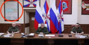 Distratti dal proditorio attacco russo al GPS dell’aereo di von der Leyen (che fessi sti russi, manco lo sanno che il GPS non serve a fare atterrare gli aerei), i media nostrani si sono persi una notizia che credevo invece li avrebbe messi in allerta – e a onor del vero, anche i media stranieri e perfino quelli ucraini non le hanno dedicato molto peso, il che mi sembra strano. Il 30 agosto, durante una riunione dello stato maggiore russo, alle spalle di un componente dello staff di Gerasimov è comparsa una mappa, che ho cerchiato in rosso nella foto. Purtroppo la qualità della foto è quella che è, ma si vede abbastanza chiaramente che sulla carta sono tracciati i confini delle oblast’ amministrative di Russia e Ucraina, e che le oblast’ di Lugansk, Donetsk, Zaporižija, Kherson, Mykolaïv e Odessa sono raggruppate in un unico territorio (dal quale è esclusa la Crimea, tra l’altro). Cosa significhi questa cosa non si sa, non ci sono stati commenti.