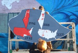 La “Conquista del West” che abbiamo potuto “rivedere” in molti film statunitensi epicamente rappresentata con i “poveri coloni” nelle carovane assaltati dai crudeli e selvaggi (“non-umani”) pellerossa (che uccidevano e torturavano donne e bambini) e difesi strenuamente (“arrivano i nostri”) dalle Giubbe Blu a cavallo, ha molti tratti di similitudine con la “conquista della Palestina” (con i dovuti distinguo).