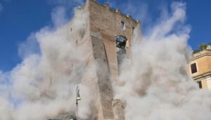 È crollata una torre medievale nel cuore di Roma: la Torre dei Conti, da restaurare con fondi PNRR per quasi sette milioni di euro. Il tetto è venuto giù in più fasi, uccidendo un operaio, Octay Stroici, e ferendone altri. Doveva essere un cantiere simbolo; è diventato l’ennesimo monumento a un dolorosissimo omicidio sul lavoro, alla decadenza.