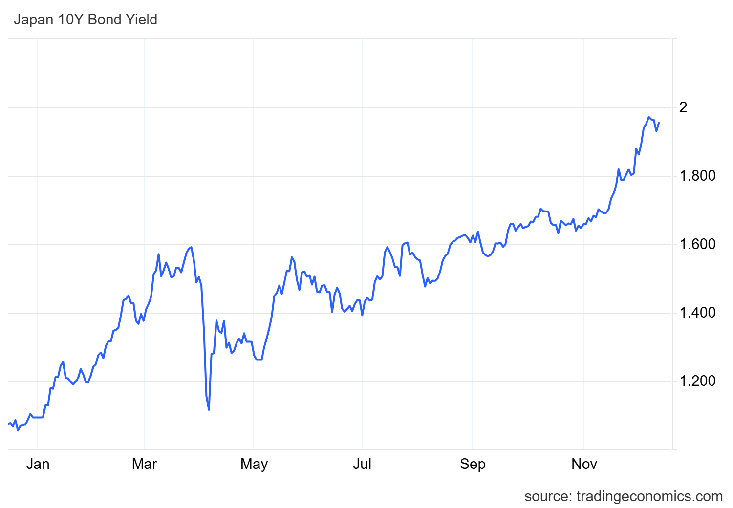 - Il decennale di Tokyo ha toccato l’1,96%, un’enormità per un’economia abituata allo “zero virgola”.