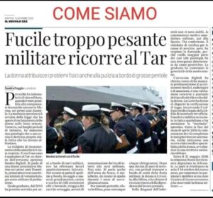 Ritorno sul discorso dell’esercito professionale di ieri. Leggete qui, una militare della marina ricorre al Tar perchè….il fucile è troppo pesante.