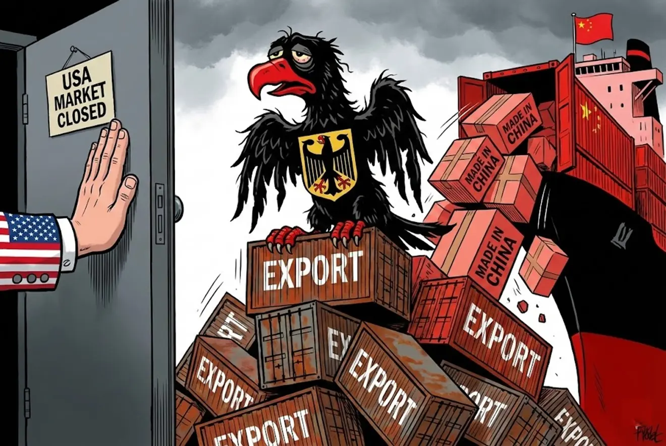 Disastro Germania: crolla l’export verso gli USA (-23%!), mentre l’import dalla Cina esplode. Il surplus commerciale si sgonfia