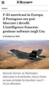 In sintesi: Più che un “kill switch” (interruttore di spegnimento), gli USA possiedono le “chiavi di casa” del software e dei ricambi. Senza il supporto di Washington, l’F-35 diventa rapidamente un costosissimo “fermacarte” hi-tech.