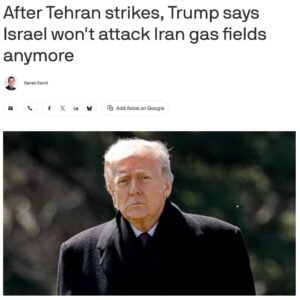 L’articolo osserva che i commenti di Trump a seguito dell’attacco israeliano a un campo petrolifero e di gas iraniano sembrano essere un tentativo di de-escalare la situazione.